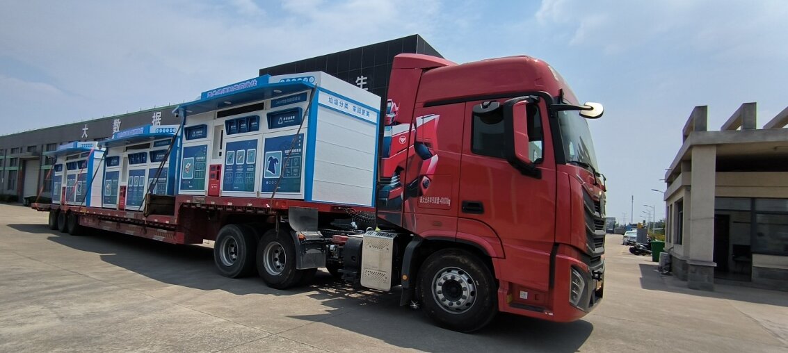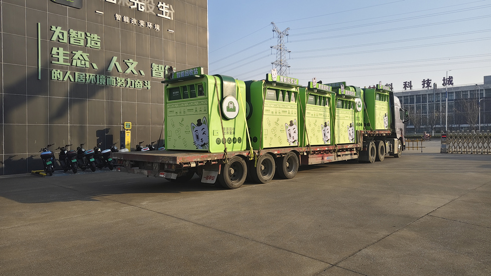 以下是此次甘肅垃圾分類項目智能垃圾房發貨實景: